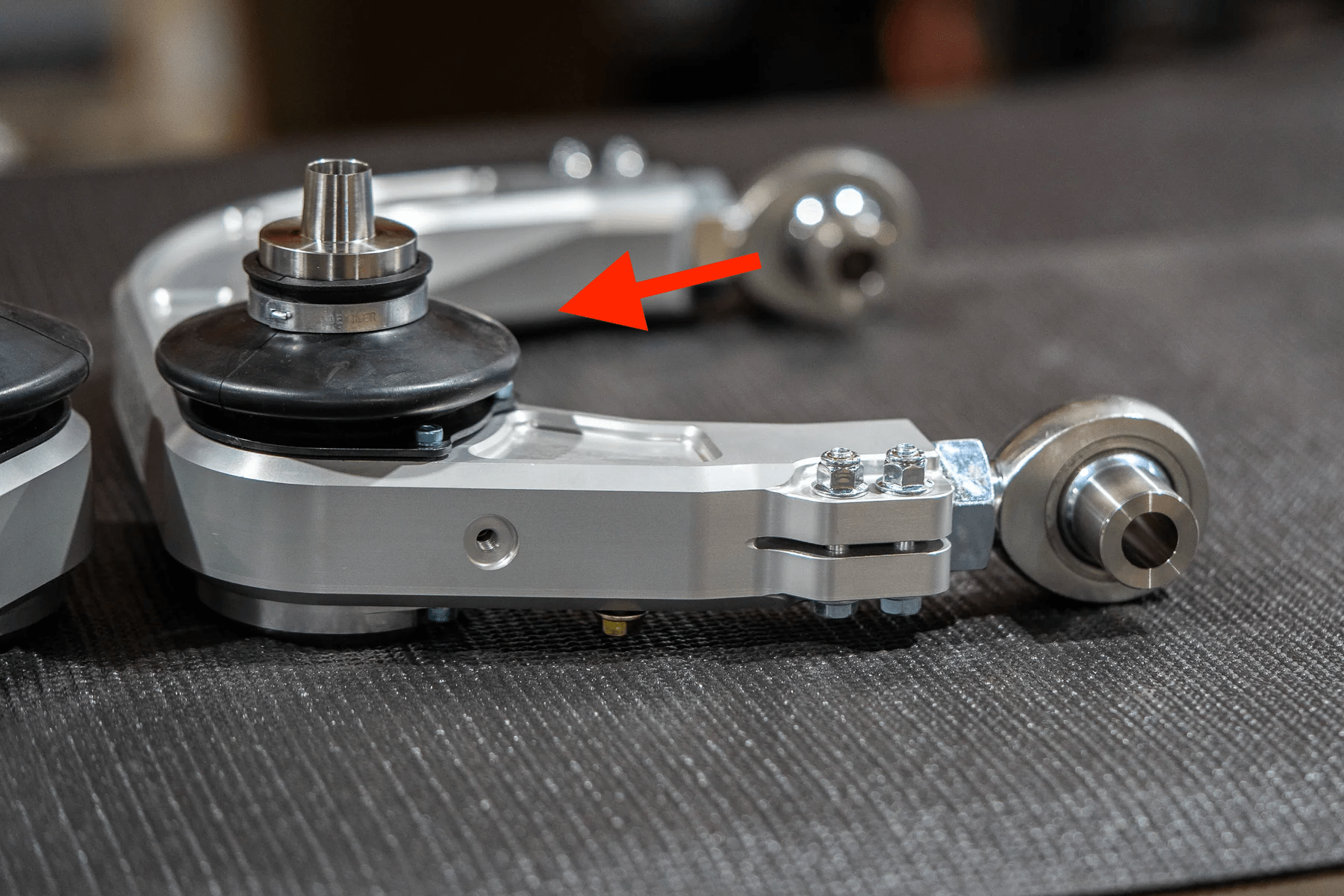 Custom molded urethane boot specially designed for RRW UCA’s to seal the uniballs, that can ultimately prolong the life of the PTFE liner in the uniball. The boot is molded from a highly flexible and durable urethane in a shore hardness that is suitable for suspension components.